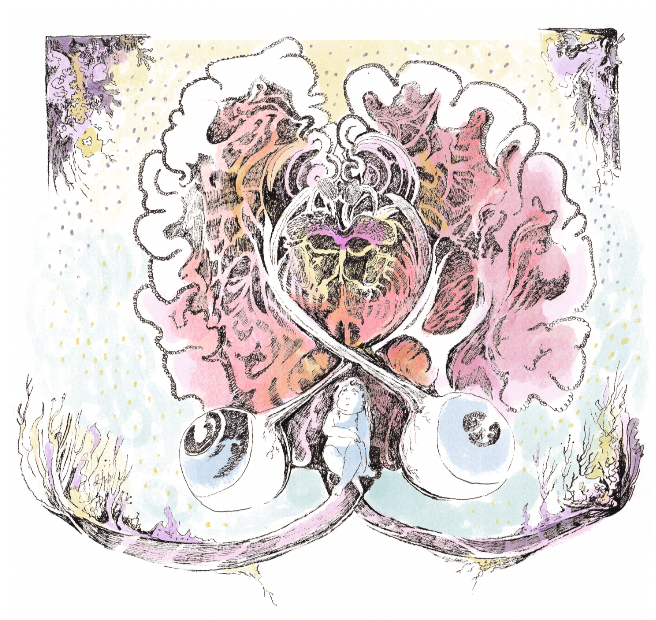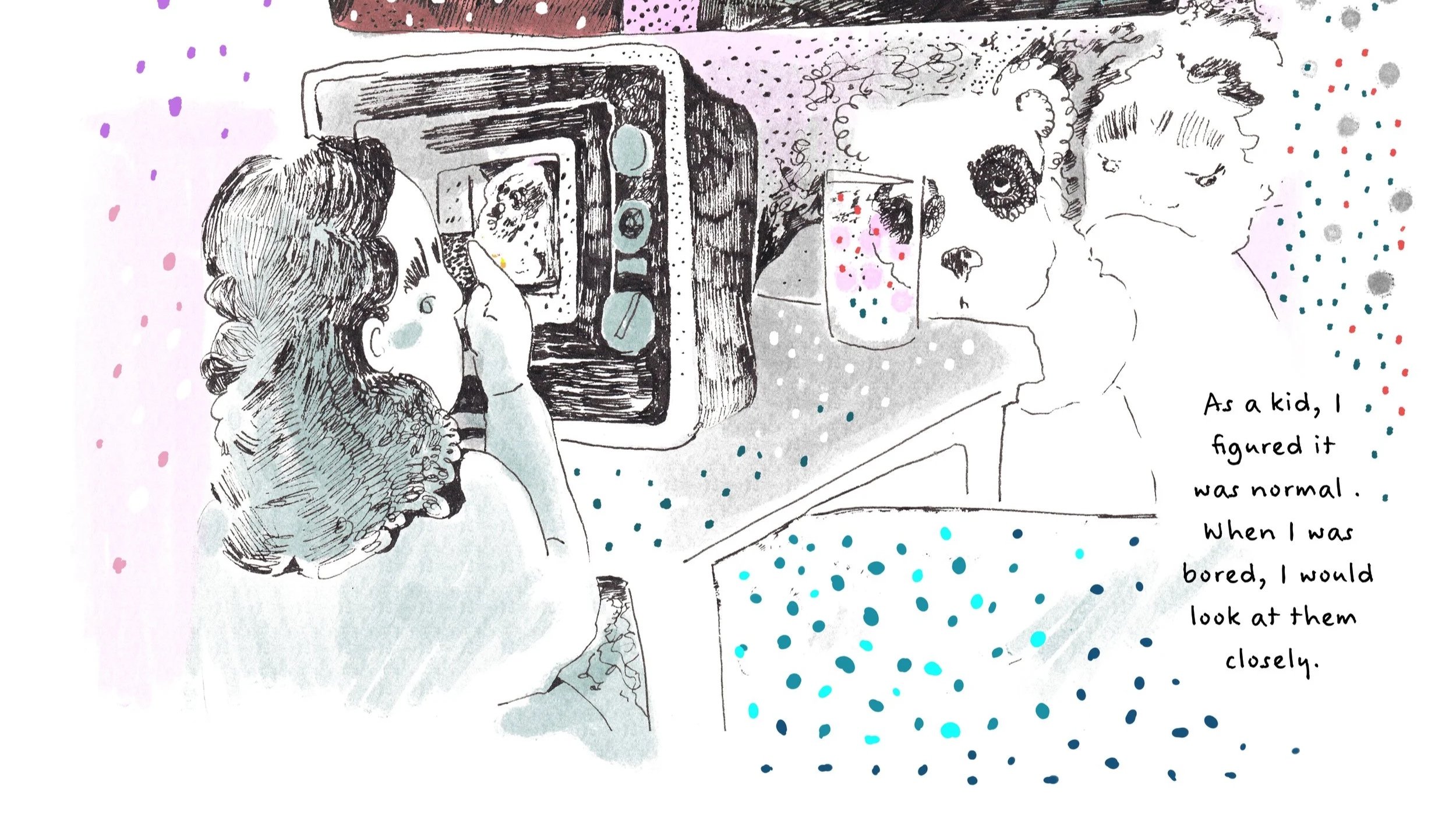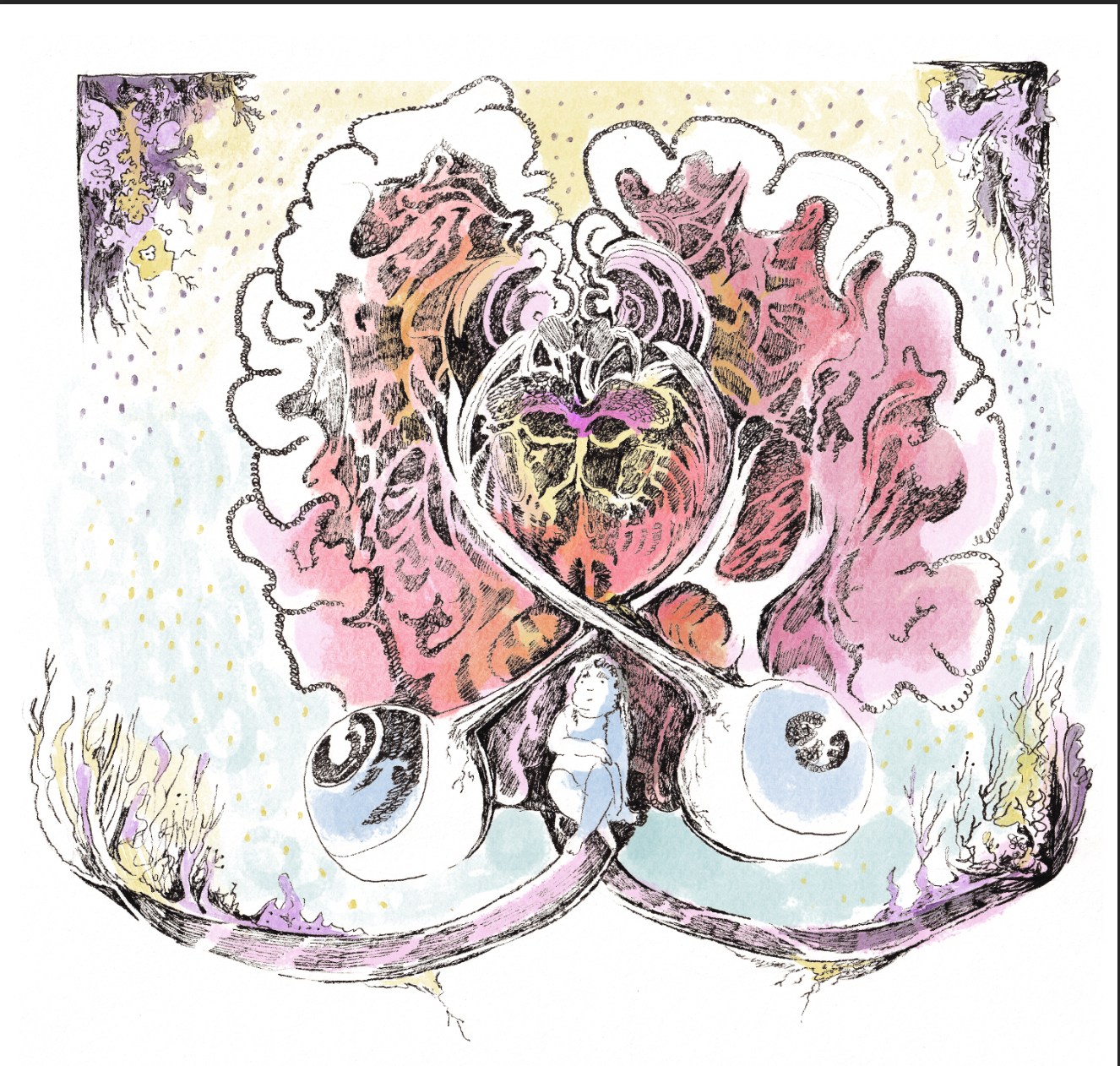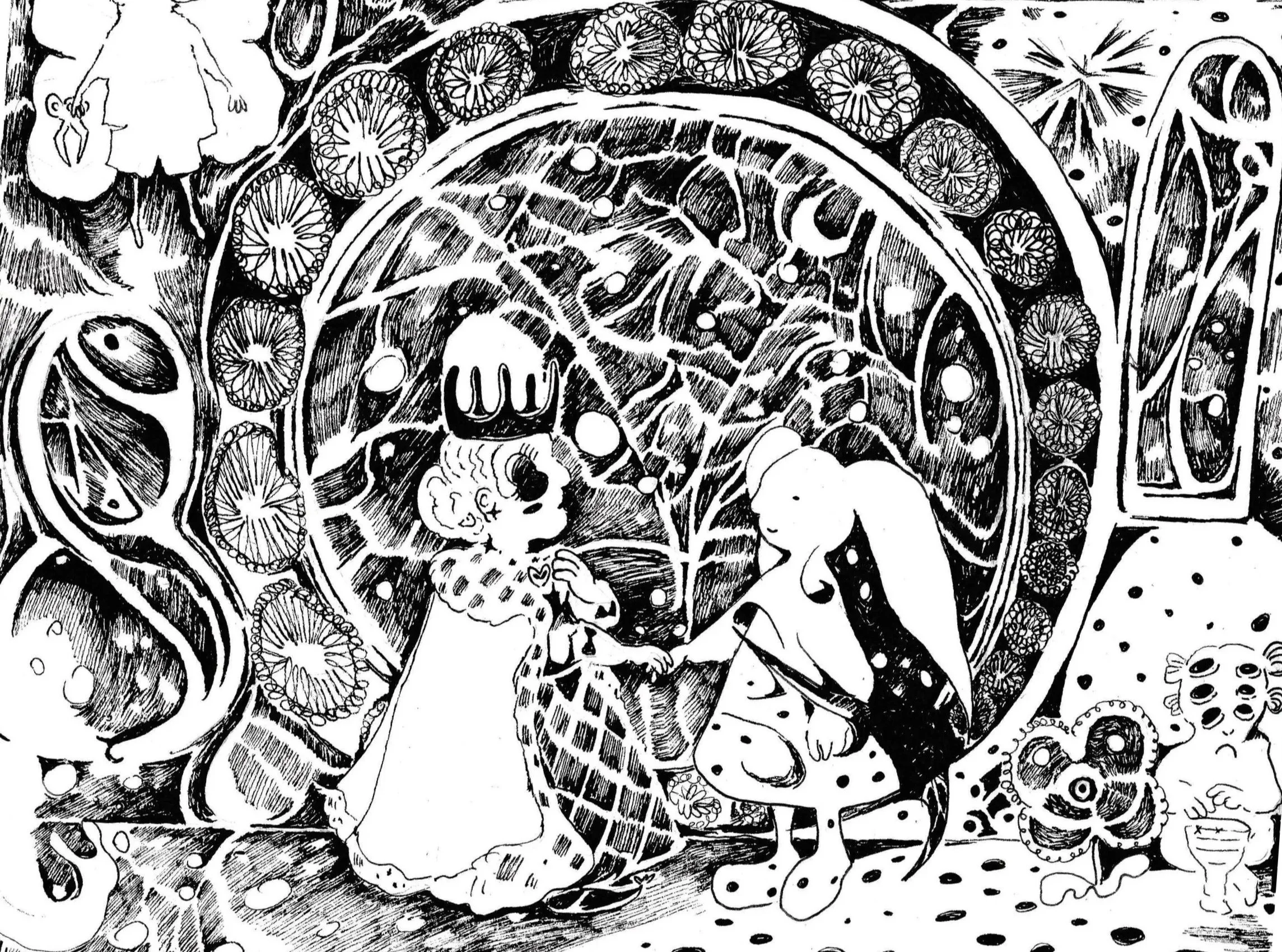 I love creating colorful paintings and intricate line work. My art has been featured in Hive Studio And Gallery, Designa Fest, Nano Gallery and Giant Robot Store. My short story “Bone Worms and Other Friends” is featured in Outlook Spring’s 9th issue, and my short Graphic novel was part of the Nib & Ink Festival and Little Bag Of Horrors.